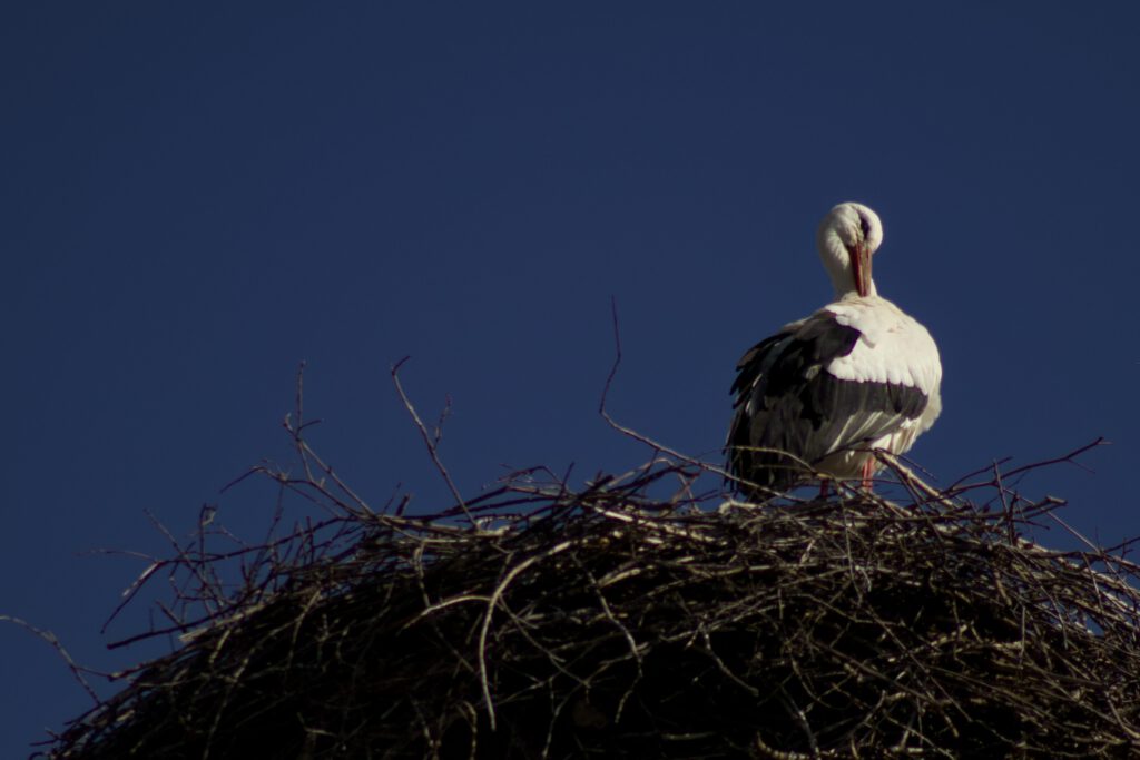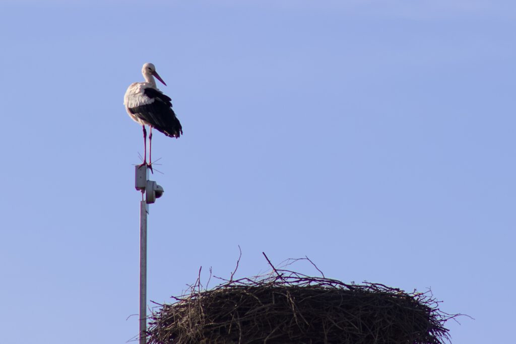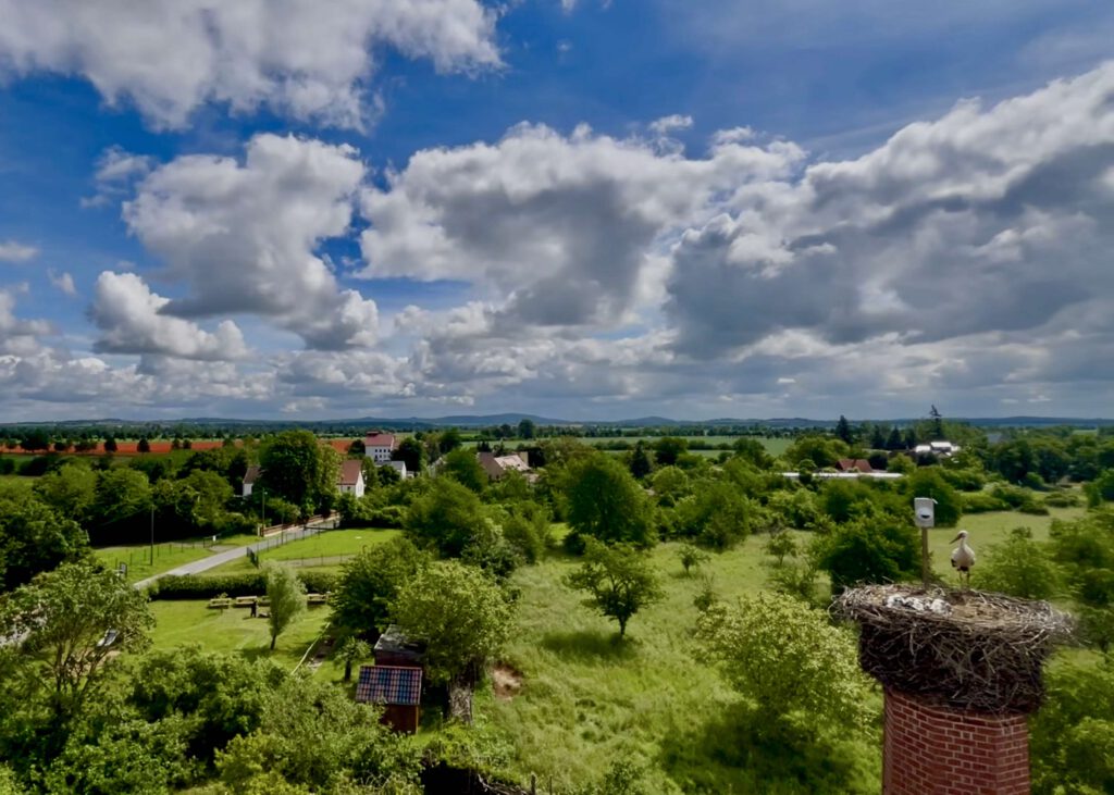Zeitgleich mit dem Erwachen des Frühlings kam auch Storch Paul wieder aus dem Süden nach Canitz eingeflogen. Als erstes wurde der Storchenhorst von oben inspiziert. Der Ausblick vom Nest in die Naturlandschaft ist aber auch atemberaubend und wunderschön. Ein paar Tage später schwebte auch Clementine aus dem Winterquartier ein und wurde herzlich mit einem Klapperkonzert begrüßt. Jetzt wird zusammen das Nest weiter ausgebaut und ausgepolstert. Mal sehen, wann die ersten Eier darin liegen.